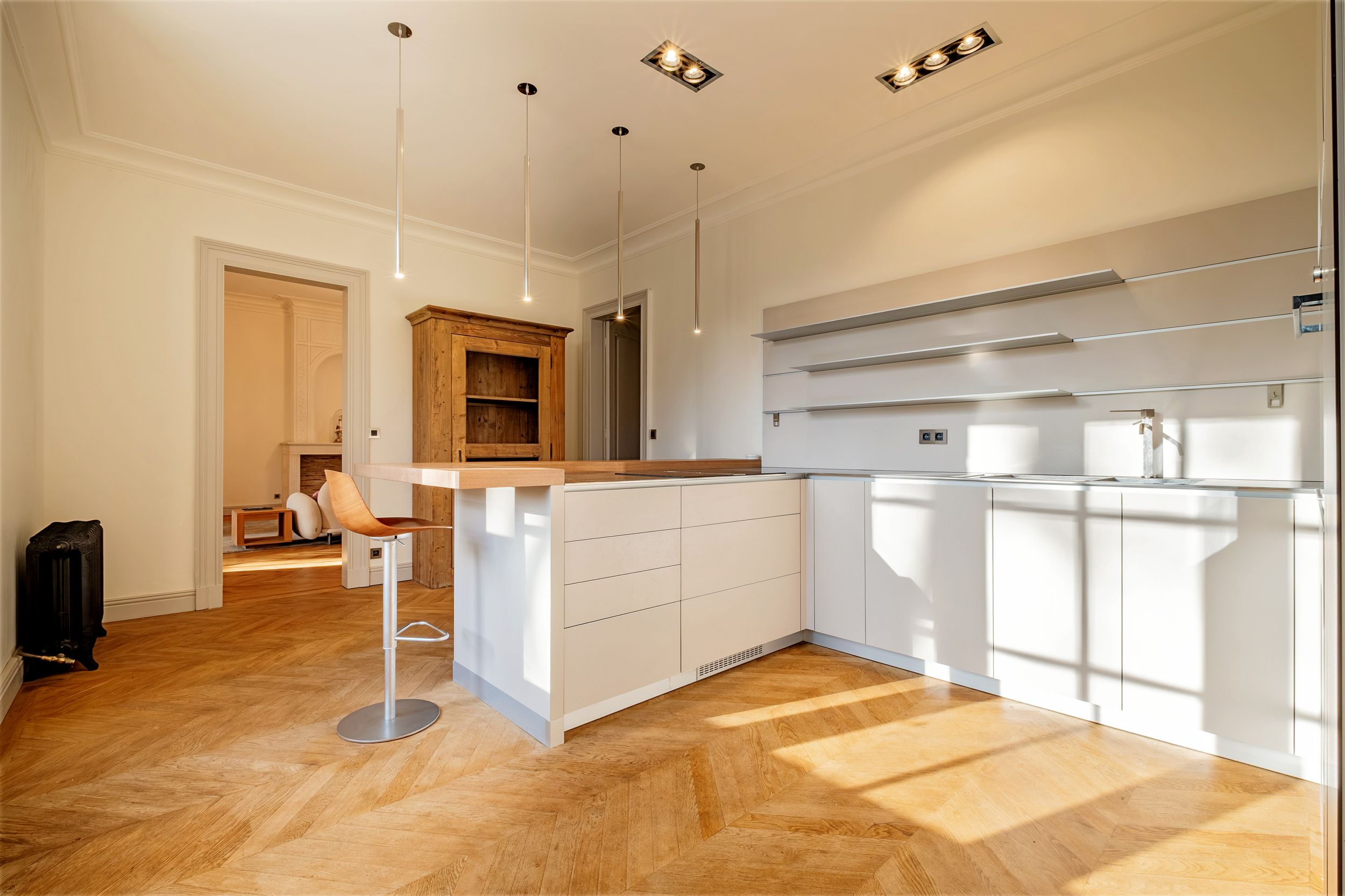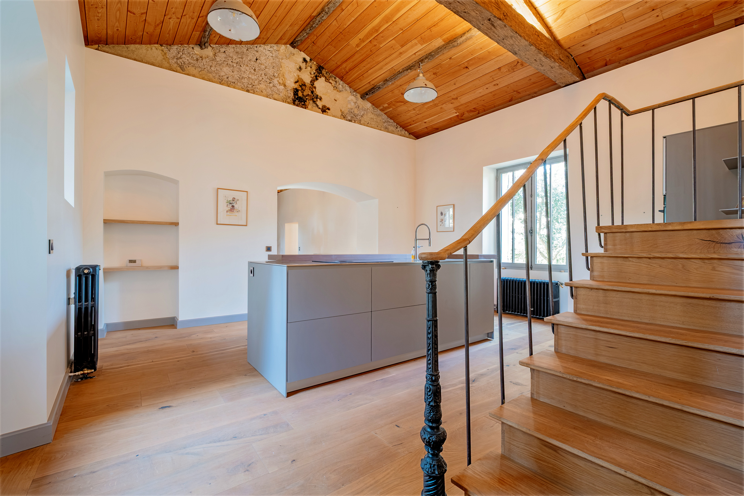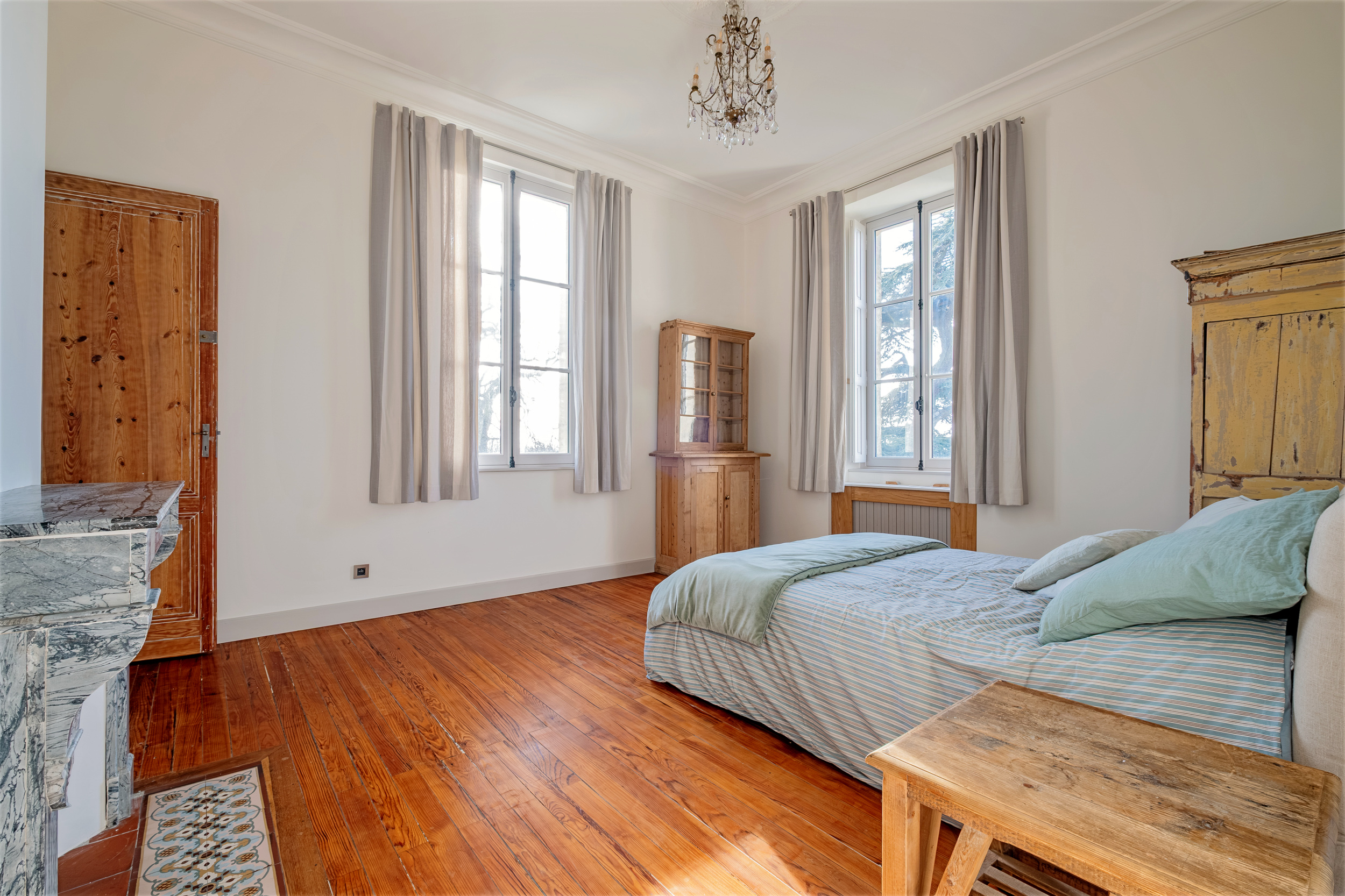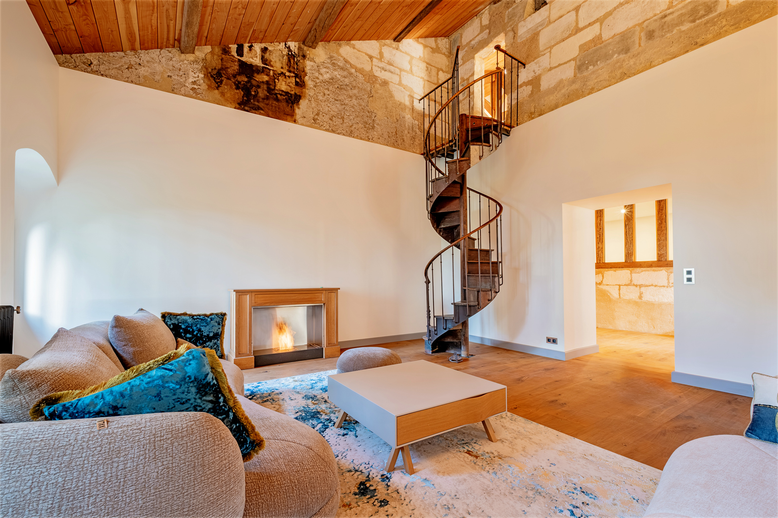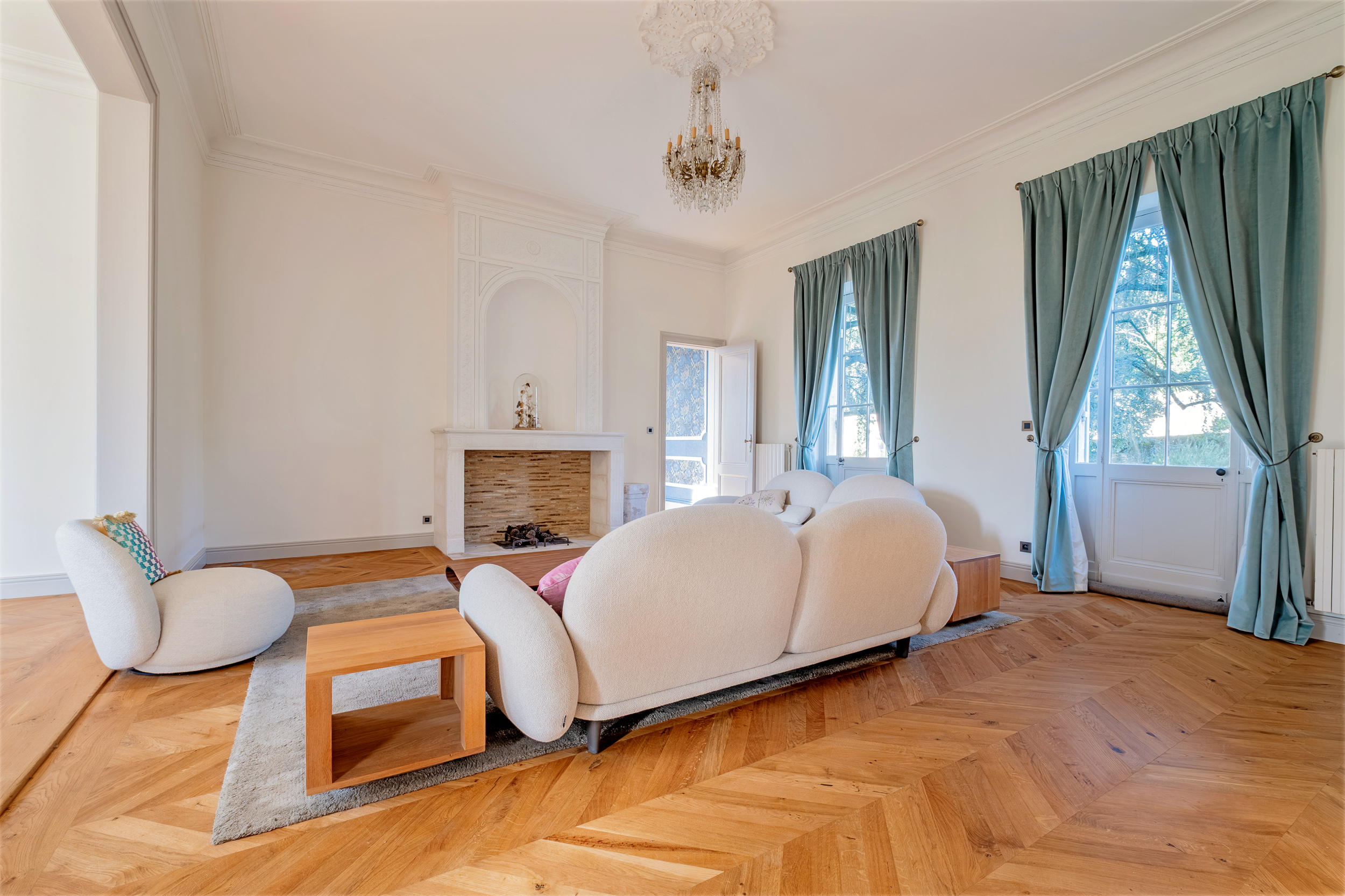 La Maison totalise près de 600m² répartis en deux bâtiments réunis et intégralement rénovés avec de très beaux matériaux. Elle conserve des prestations anciennes, de très belles cheminées et de nombreux détails chinés aux quatre coins des campagnes françaises qui se mêlent avec justesse au confort du moderne.