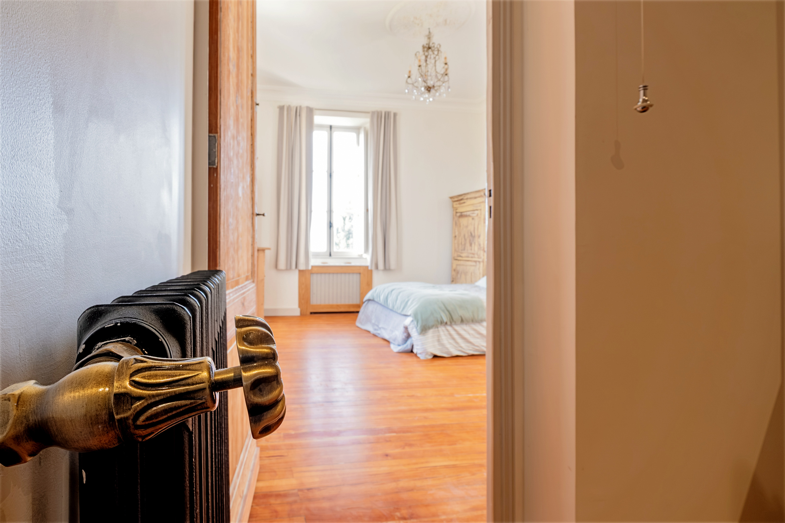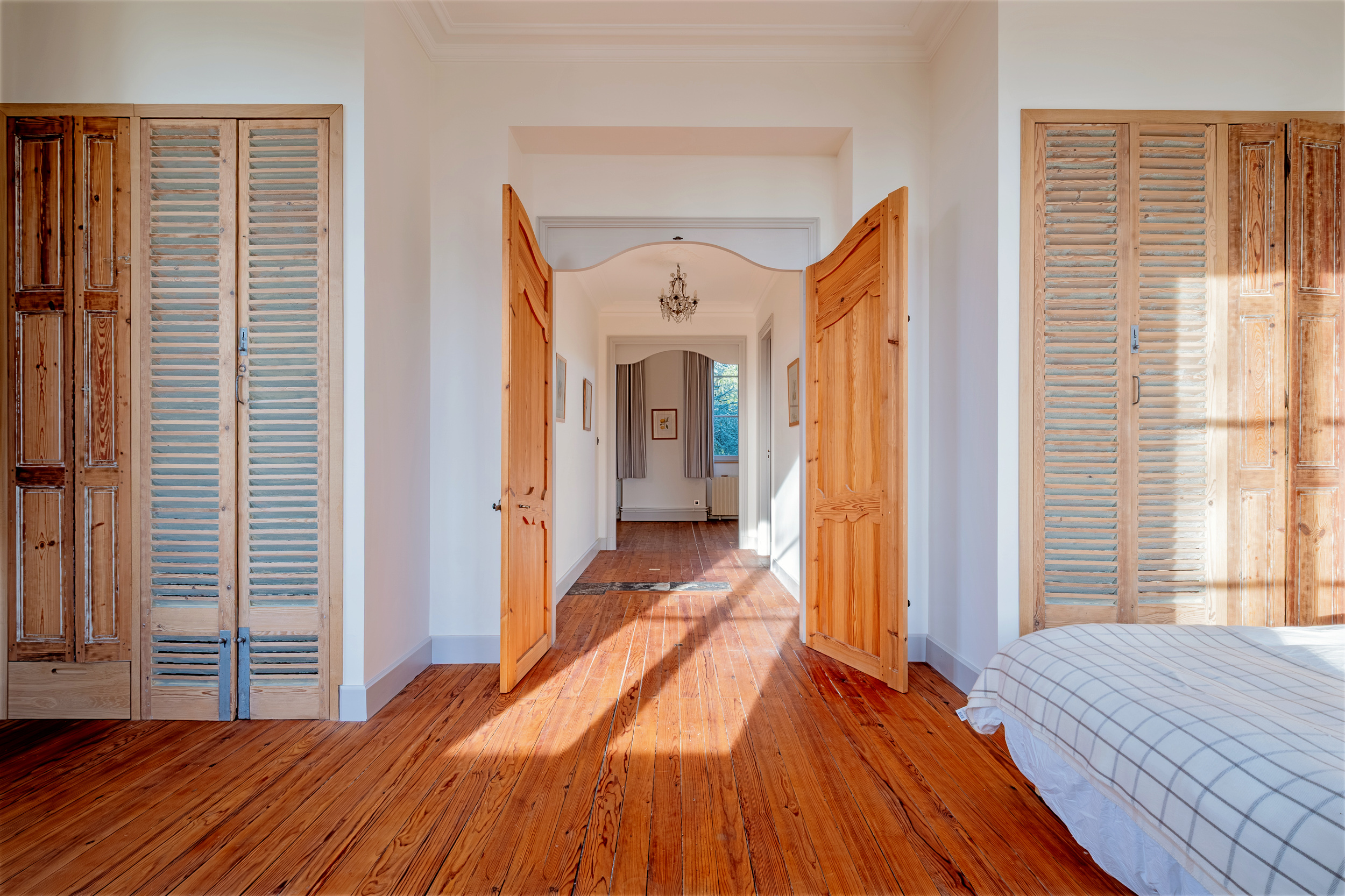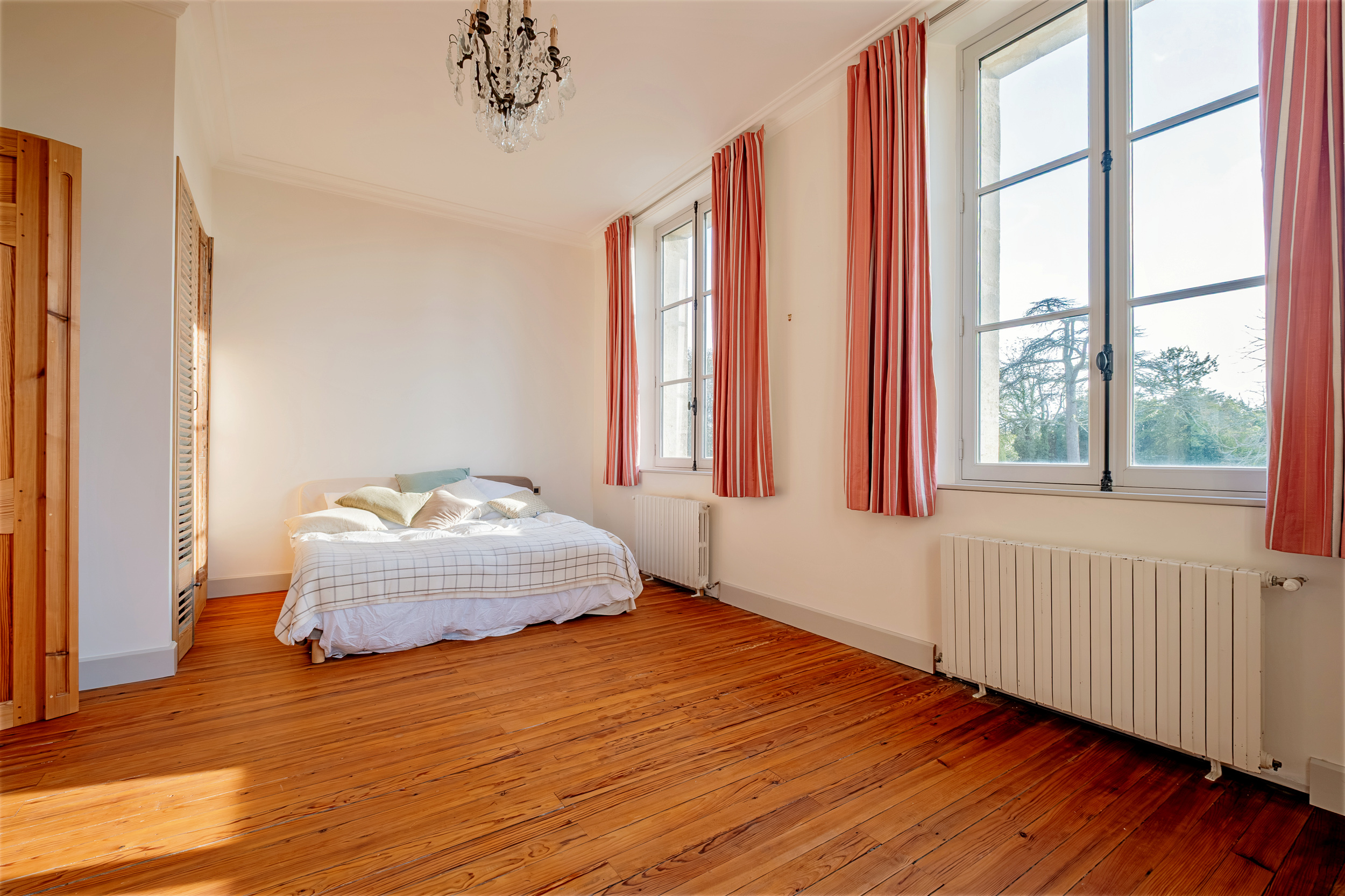 La bâtisse principale comprend, au rez-de-chaussée, les salles de réception, un salon à emménager à l’envie et une belle cuisine dinatoire. L’étage propose trois grandes chambres, chacune traitée en suite.