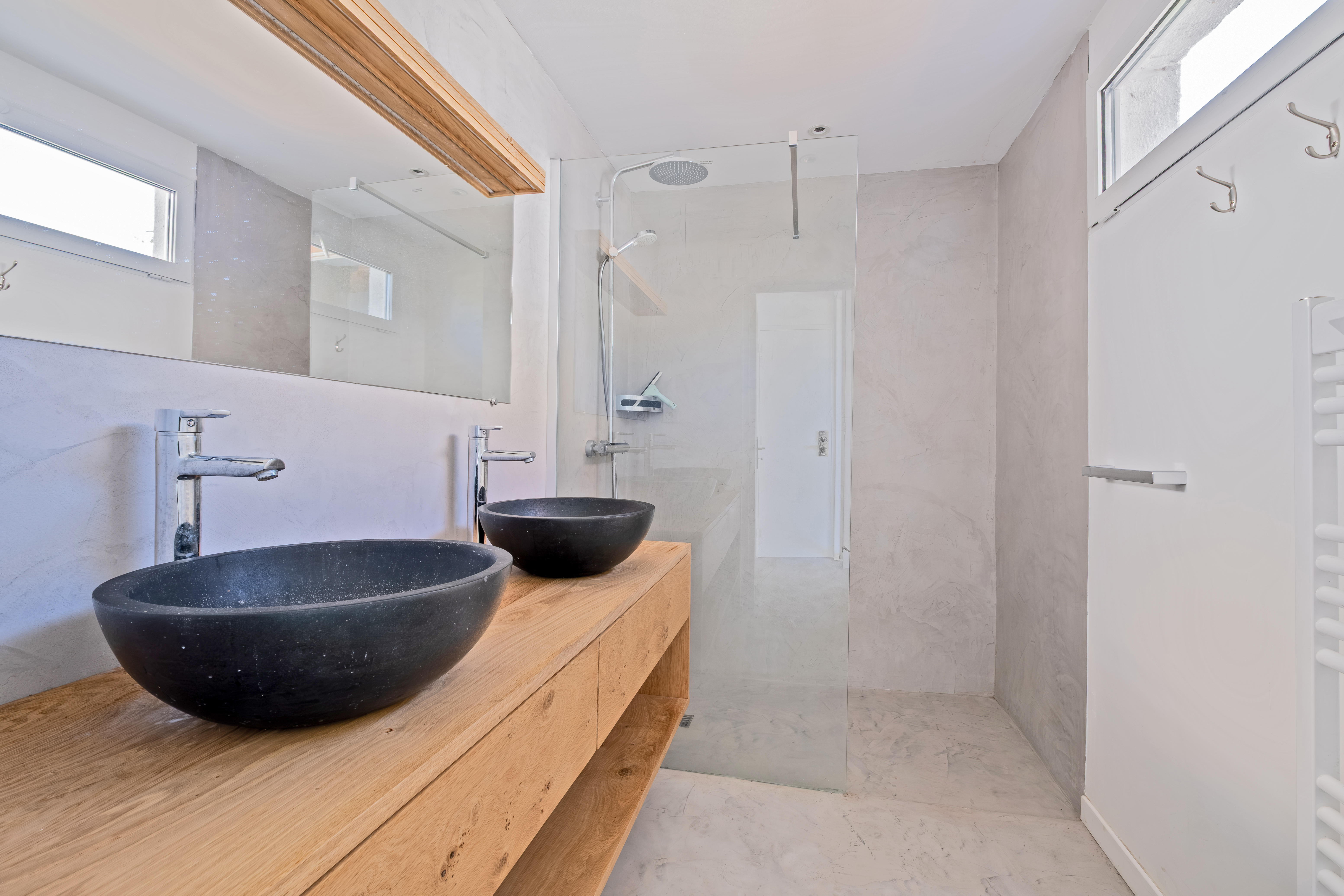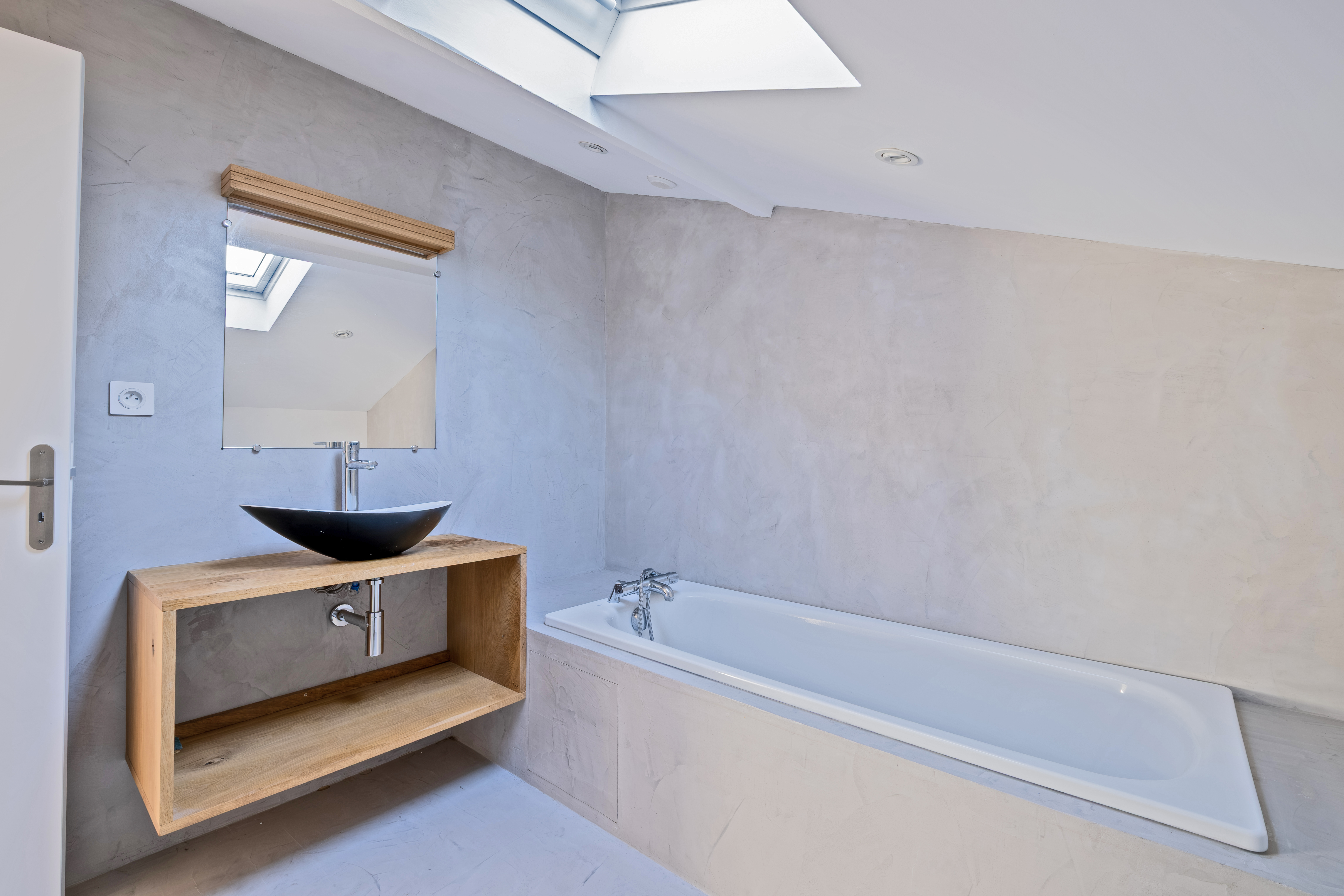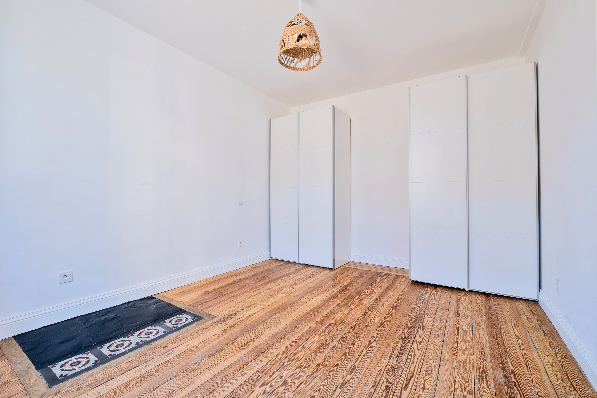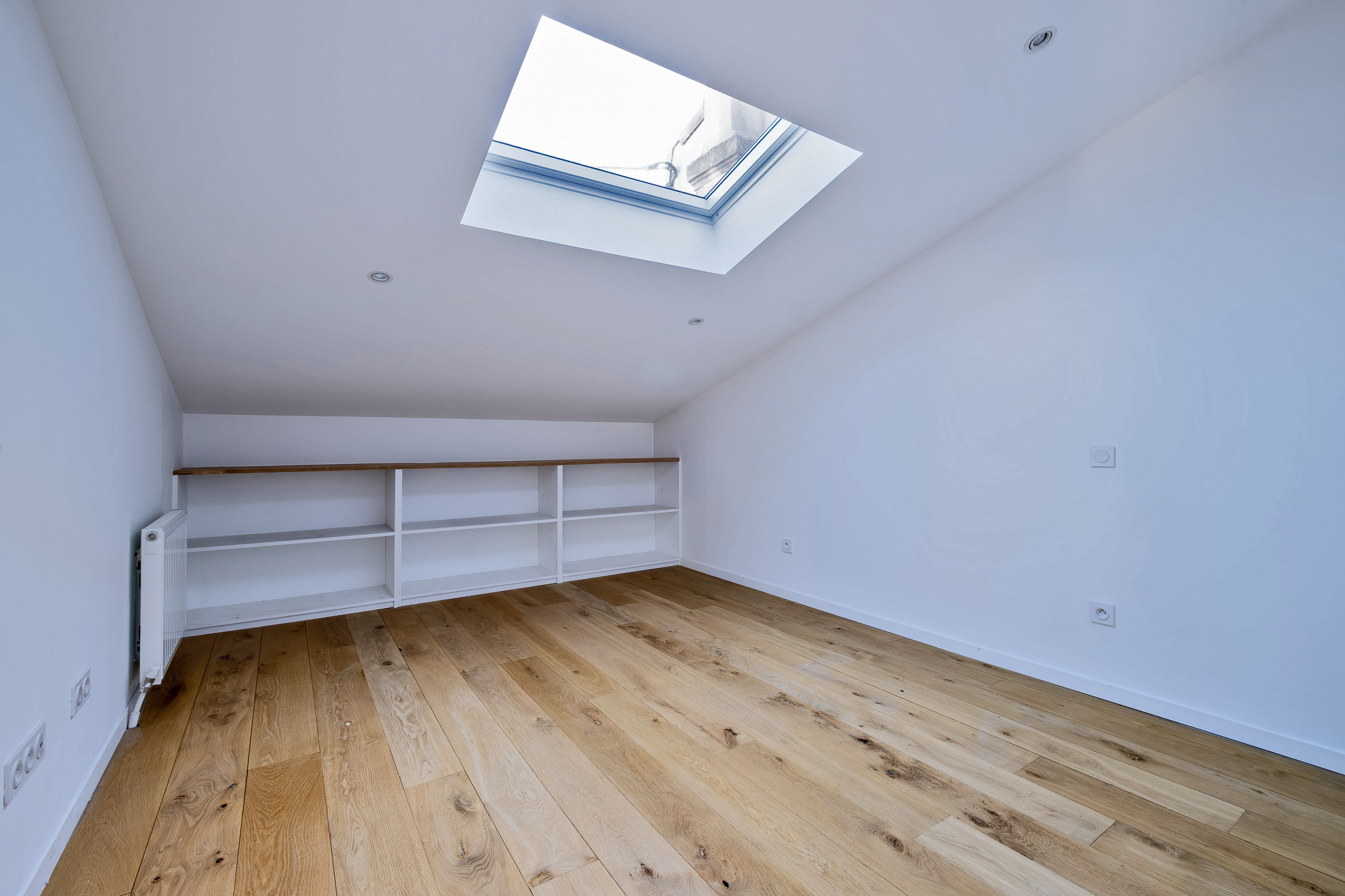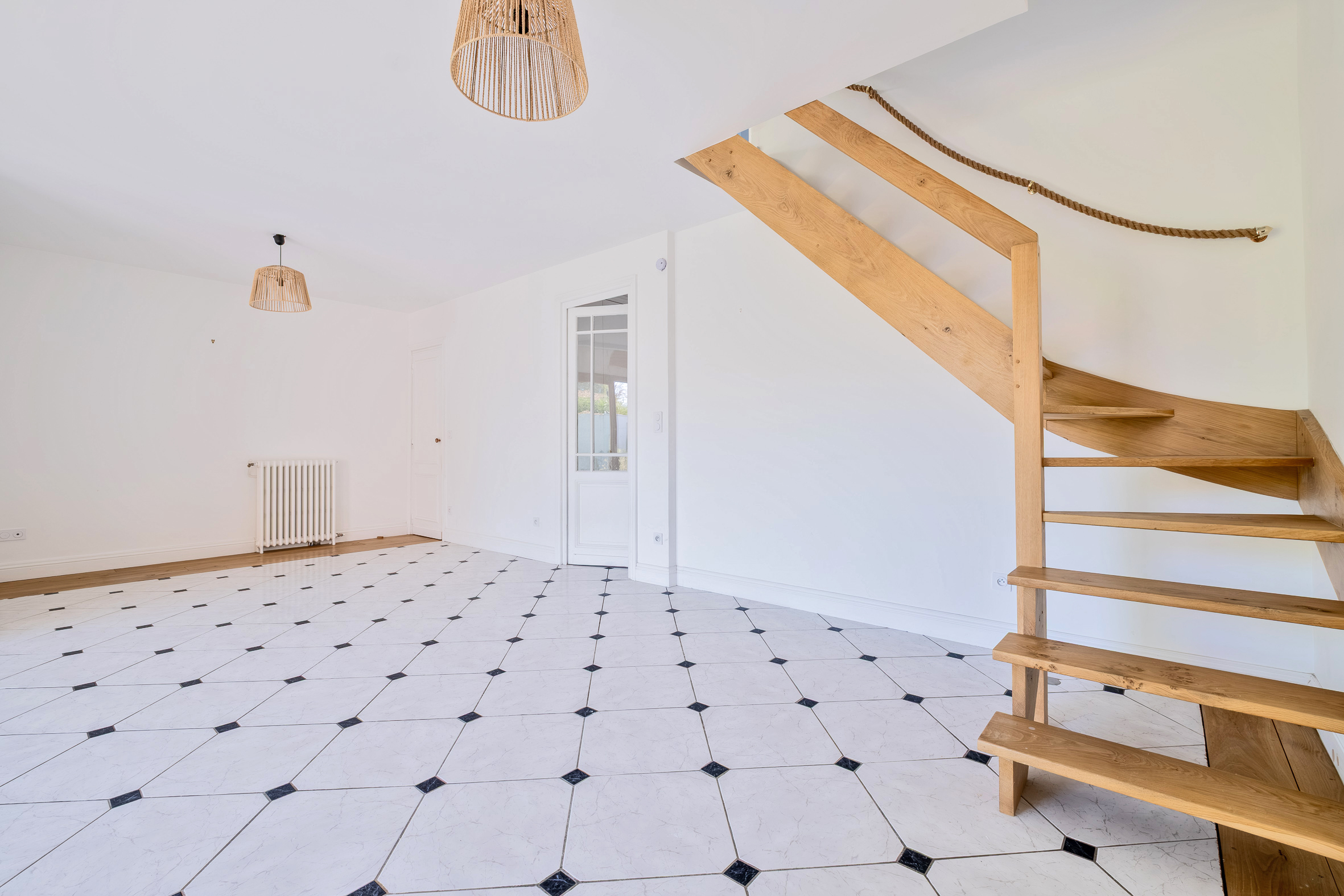 Un escalier en bois mène à l'étage qui propose deux chambres lumineuses, dont une qui pourrait être divisée en deux, et une salle de bain.