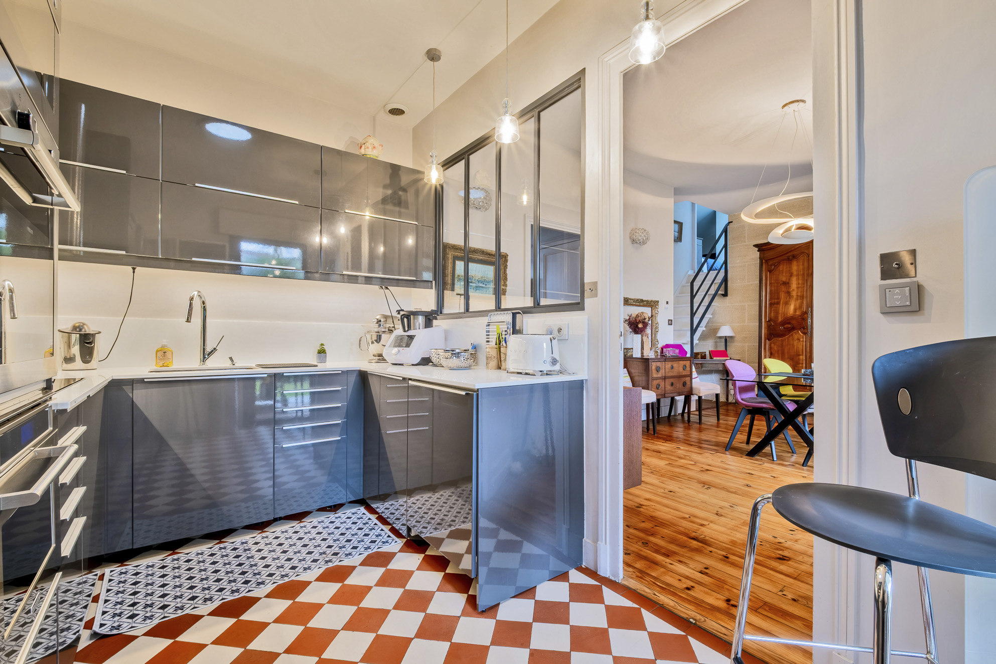 À deux pas du centre du Bouscat, du Tram D et de toutes les commodités, très jolie maison en pierre totalement rénovée en 2017 avec des matériaux de qualité. Sur deux niveaux, elle développe 140 m² carrez et 149 m² au sol et profite d'un beau jardin paysagé idéalement exposé sud-ouest.